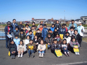 ●設置した炭素繊維水質浄化装置 ・ロープ吊り下げセット I-K1-8 × 8セット (CFK−1 × 64本) 記念撮影最後に川口市立上青木南小学校の生徒と記念撮影をしました。