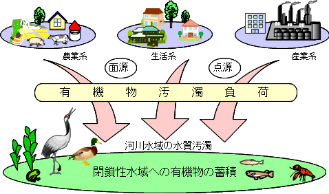 汚濁した河川、湖沼の水質問題は、悪臭の発生、水生生物の生育環境の悪化、さらに無生物化等生態系への悪影響、工業、農業、生活水利用も不適合となるなど、生活や産業経済活動への支障と環境破壊などをもたらします。さらに、水質問題には流水状態で起きる現象とは別に停滞水域でも固有の現象から生じる問題があります。